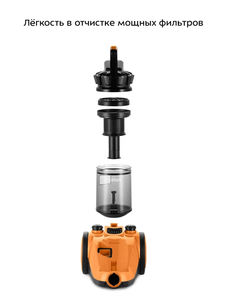 Пылесос Kitfort КТ-5280 имеет современную многоуровневую систему фильтрации, что помогает провести качественную уборку. Также прибор оснащен выходным фильтром, который уменьшает выброс пыли обратно в воздух.