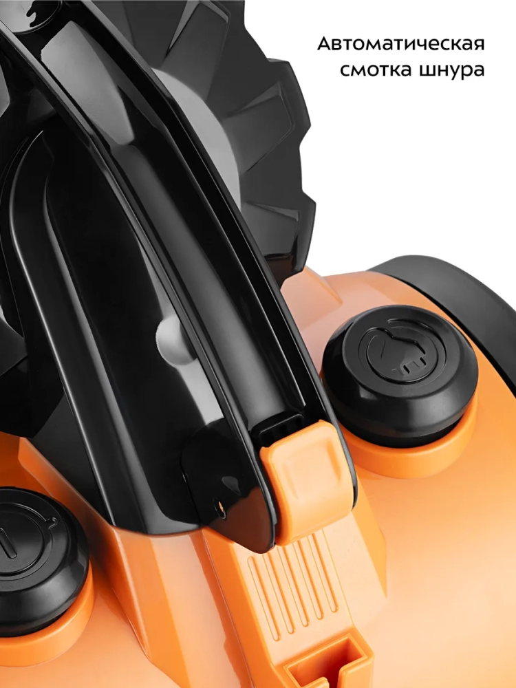 Пылесос оснащен колесами для легкого перемещения во время уборки. Длина телескопической трубки регулируется. В устройстве предусмотрена автоматическая смотка шнура в корпус прибора, поэтому шнур питания не будет мешать при хранении.
