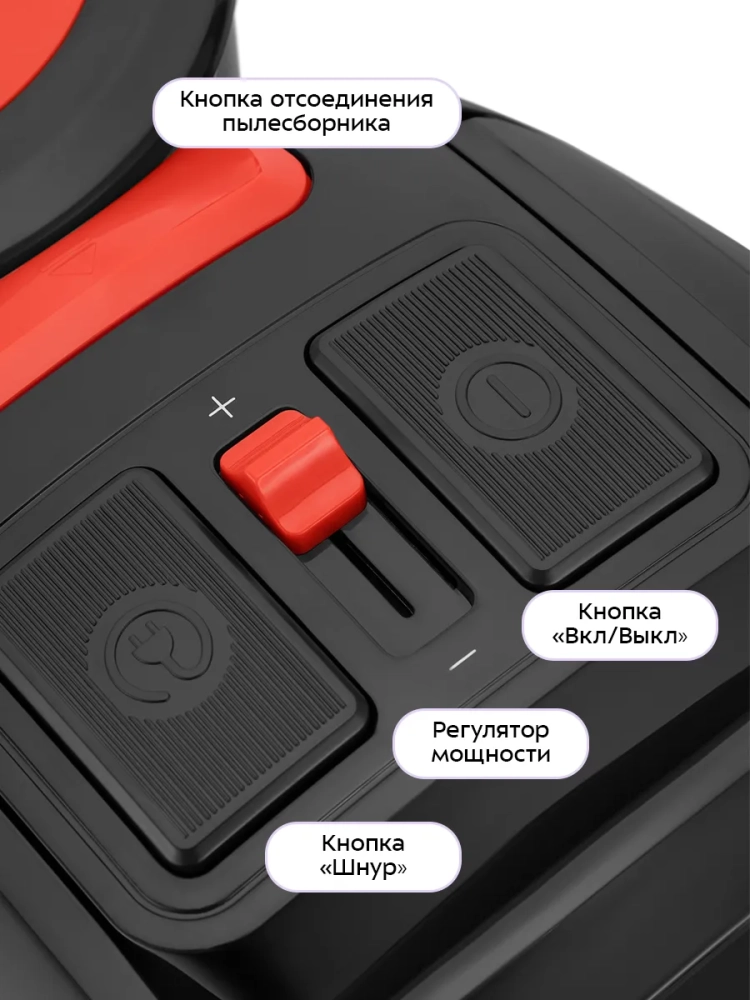 У пылесоса простое управление. Включить пылесос можно не наклоняясь, слегка нажав ногой на кнопку «Вкл/Выкл». Вы можете изменить мощность работы с помощью регулятора. Максимальная мощность подойдет для очистки ковров и сильных загрязнений, а минимальная — для уборки гладких поверхностей с легкой степенью загрязнения.
