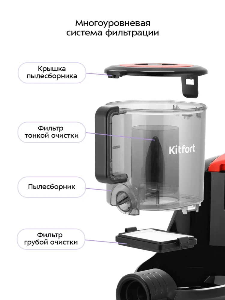 Пылесос Kitfort КТ-5392 имеет современную многоуровневую систему фильтрации, что помогает провести качественную уборку. Также прибор оснащен выходным фильтром, который уменьшает выброс пыли обратно в воздух. Благодаря комплекту насадок пылесос удобно использовать как при генеральной, так и при локальной уборке. С ним утомительная уборка превращается в легкое и увлекательное занятие, а время уборки сокращается вдвое.
