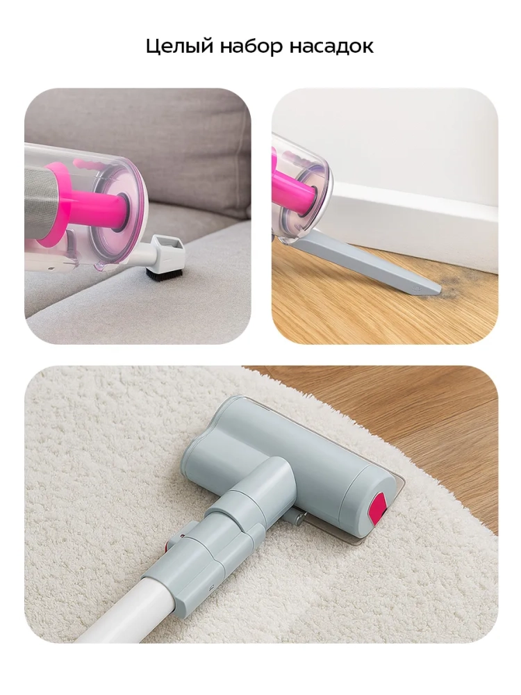 У пылесоса есть дисплей, на котором отображаются текущий уровень заряда аккумулятора, кнопка «Скорость» и индикаторы. У данной модели пылесоса 3 скорости работы. На первой скорости вертикальный пылесос работает без подзарядки до 55 минут, на второй — 35 минут, на третьей — 12 минут.