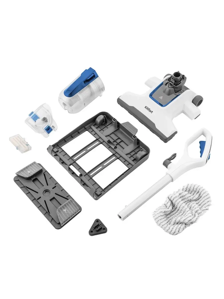 Вертикальный пылесос с функциями паровой швабры Kitfort КТ-556 удобен при локальной и генеральной уборке. Прибором можно пользоваться как пылесосом и как паровой шваброй по отдельности, а также одновременно — всасывая пыль и мелкий мусор, очищать поверхность от грязи, въевшихся пятен и жира при помощи горячего пара.