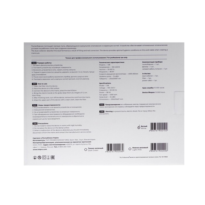 Пылесос для маникюра TNL Dust Barrier, 80 Вт, 4300 об/мин, многоразовый фильтр, белый