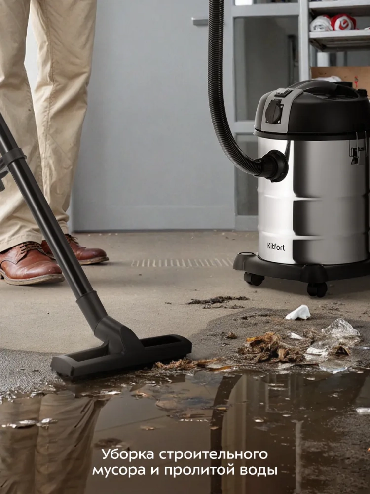 Пылесос Kitfort KT-5249 — это мощный и универсальный инструмент для уборки дома и автомобиля. С его помощью можно эффективно очищать напольные покрытия, ковры и мебель. Этот проводной пылесос оснащен емким контейнером на 25 литров, что делает его идеальным для уборки после ремонта и других сложных задач. Моющий пылесос Kitfort способен собирать как сухой мусор, так и пролитую воду, что делает его незаменимым помощником в доме.