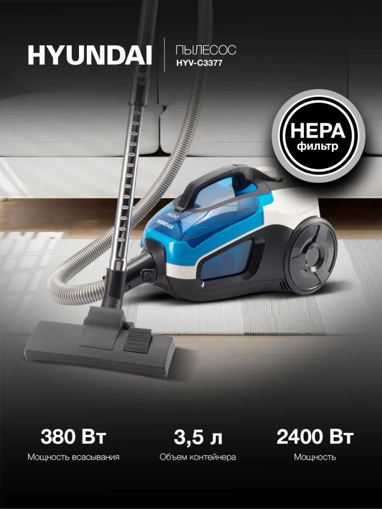 Hyundai HYV-C3377 – это эргономичный пылесос, с которым сухая уборка станет эффективнее и будет занимать меньше времени.