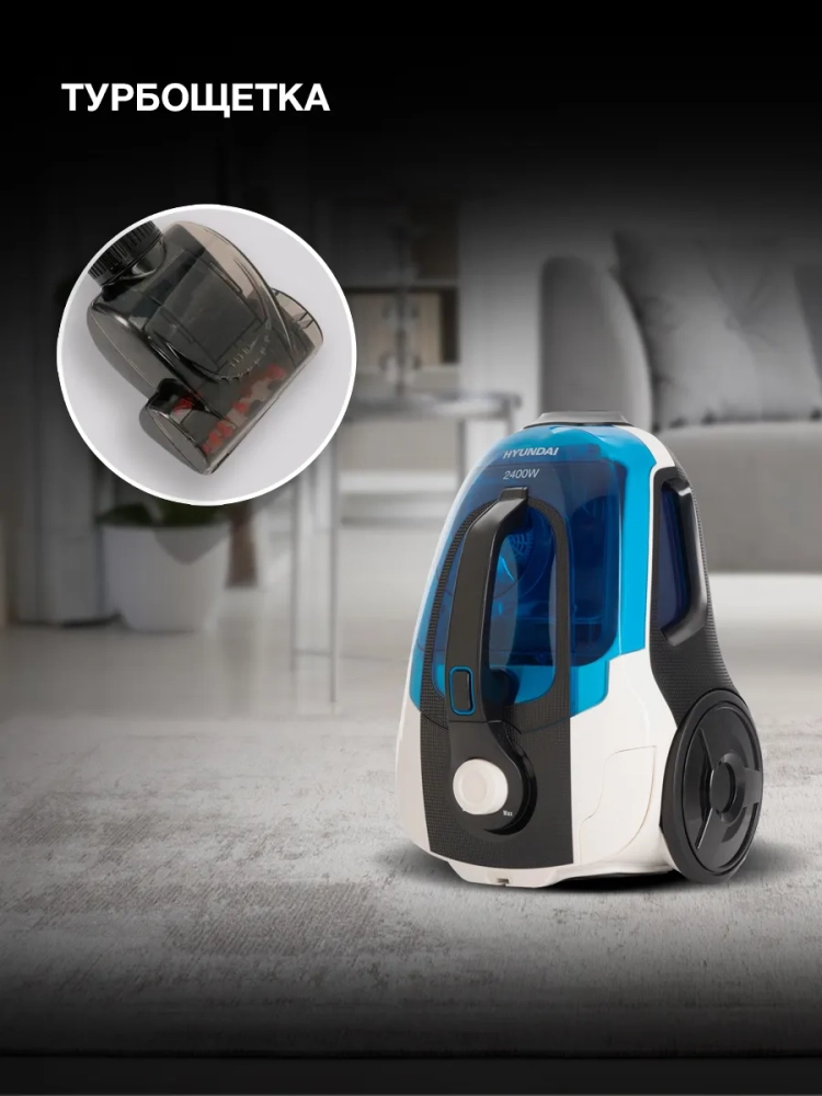 Мощность Hyundai HYV-C3377 варьируется при помощи кругового регулятора. Её максимальный порог – 2400 Вт, однако для всасывания это значения составляет 380 Вт. При этом уровень шума в любом выбранном режиме не будет превышать 88 дБ. Для повышения эффективности Hyundai HYV-C3377 оснащен циклоном.