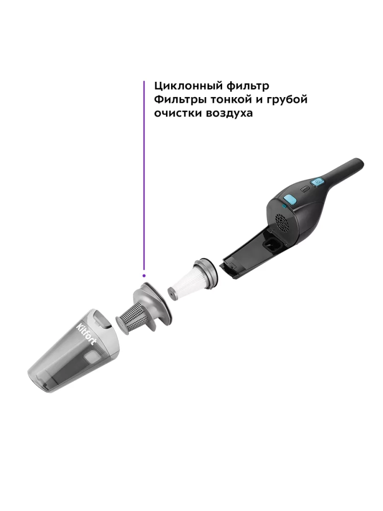 Беспроводной вертикальный пылесос Kitfort КТ-5161 — это мощное и универсальное устройство для эффективной уборки дома. Благодаря конструкции «2 в 1», он сочетает в себе функции вертикального и ручного пылесоса, что делает его идеальным для уборки как напольных покрытий, так и мебели. Пылесос оснащен современным циклонным фильтром, который обеспечивает высокую степень очистки, независимо от наполненности контейнера. Контейнер легко снимается и чистится, что упрощает уход за устройством.
