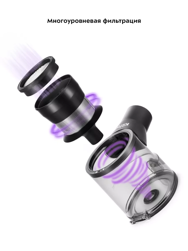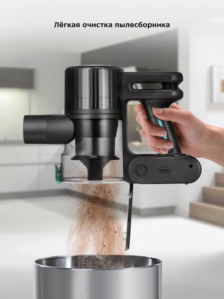 Пылесос оборудован современным циклонным фильтром, обеспечивающим хорошую очистку, при этом сила всасывания не зависит от наполненности пылесборника. Контейнер пылесборника легко снимается и чистится, а также у него есть дополнительная крышка для быстрого сброса мусора без вынимания фильтров. Внутри пылесборника находится фильтр тонкой очистки и фильтр грубой очистки c металлической сеткой, которые можно вынуть и почистить.