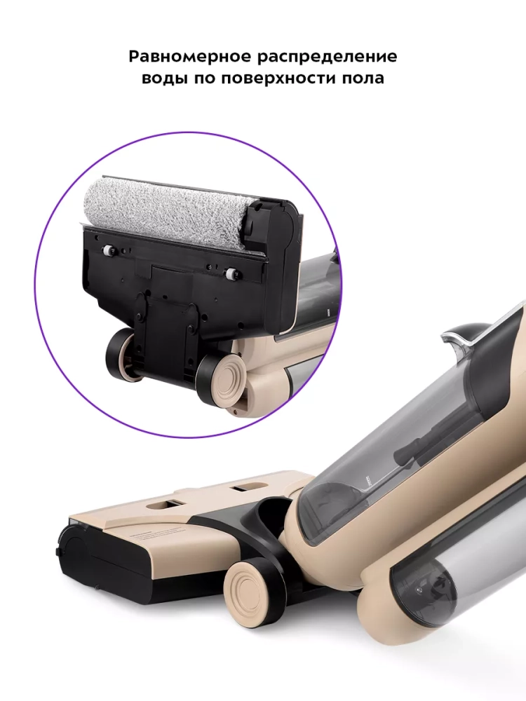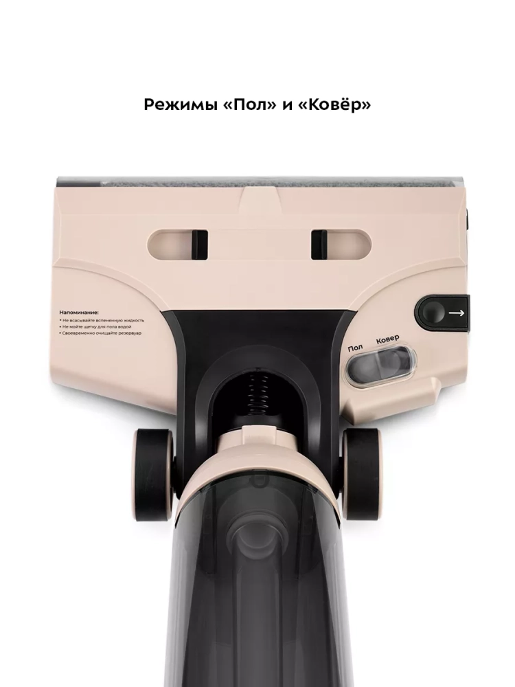 Принцип работы моющего пылесоса КТ-5160 прост: благодаря непрерывному вращению валика турбощетки, вода равномерно распределяется по поверхности пола, а затем всасывается пылесосом и попадает в резервуар для грязной воды.