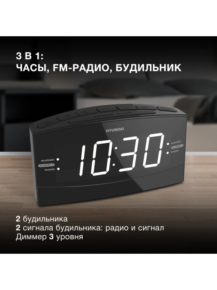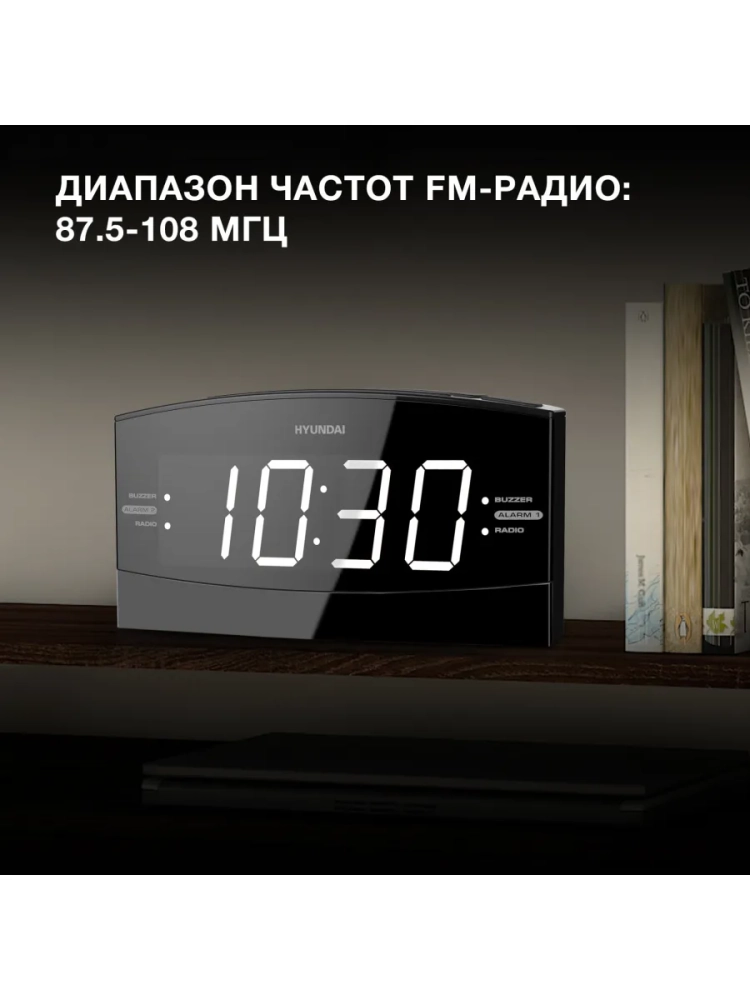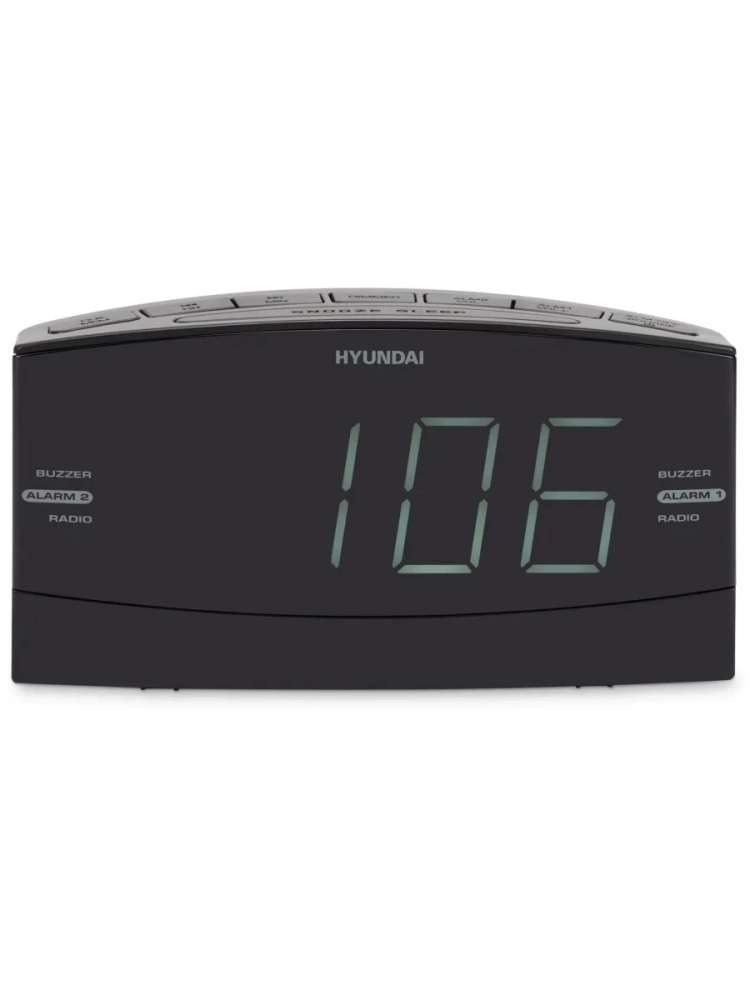 Радиобудильник Hyundai H-RCL238 черный, белая подсветка часов, цифровой FM тюнер.