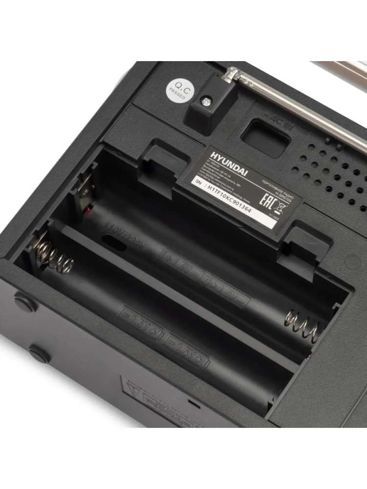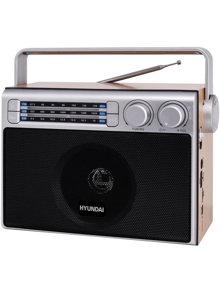 Аналоговый тюнер работает в трёх диапазонах: FM (87.5-108 МГц), АМ (522-1620 МГц) и SW (9.5-18 МГц). Такие характеристики позволяют устройству принимать большинство радиостанций, доступных в любом регионе. Антенна HYUNDAI H-SRS105 имеет классическую телескопическую конструкцию.