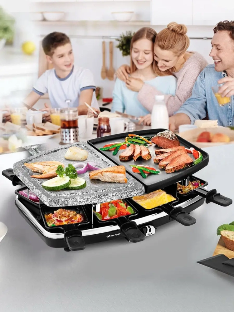 Раклетница Kitfort КТ-1649 — это устройство для приготовления разнообразных закусок, а также она может объединить вокруг себя теплую компанию друзей.