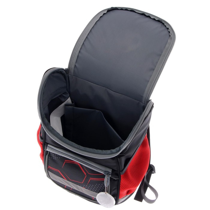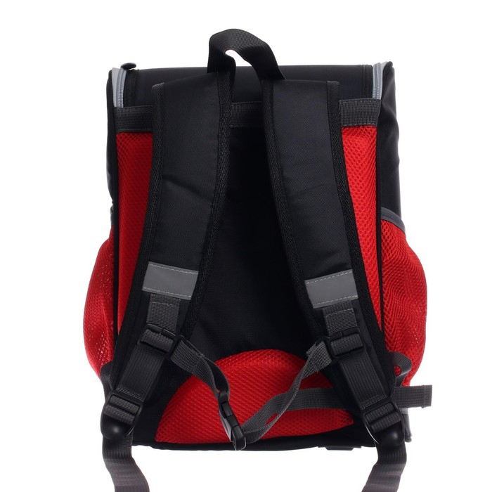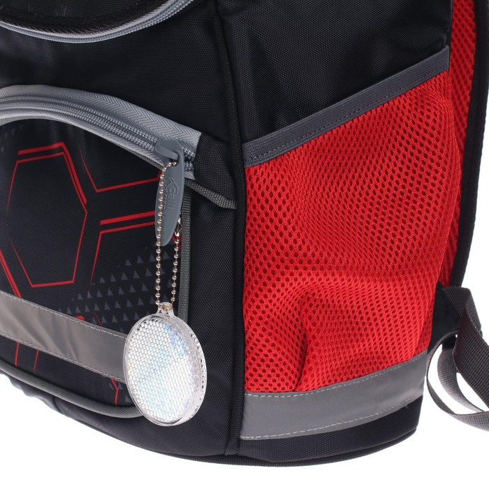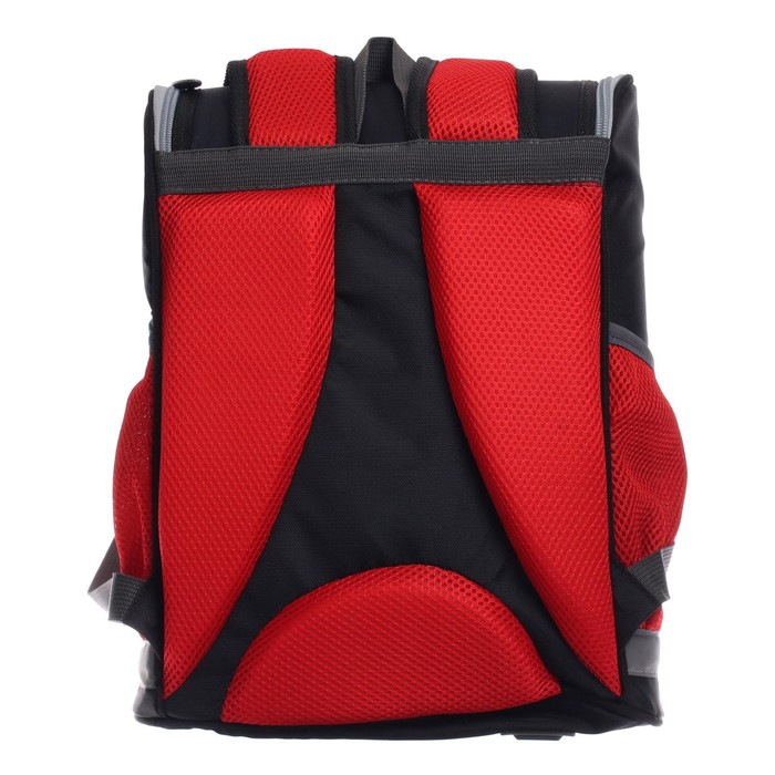 Боковые стенки ранца, усиленные деталями из ПВХ, жёсткое формованное дно и формованный верхний клапан делают изделие более прочным и защищают содержимое от механических повреждений. Мягкая анатомическая спинка, изготовленная из "дышащих" материалов и регулируемые плечевые лямки обеспечивают комфортную посадку ранца на спине ребёнка. Возможна комплектация нагрудной стяжкой. На передней поверхности, боковых стенках и на лямках присутствуют световозвращающие элементы, дополняет их брелок-катафот. Рюкзак укомплектован мешком для обуви с аналогичным принтом