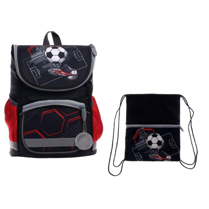 Ранец школьный Стандарт, 36 х 26 х 16 см, + мешок для обуви 40 х 32 см, Сalligrata П "Футбол"