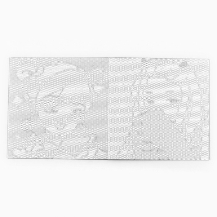 Совершенно новый вариант раскраски-антистресс. На первый взгляд, это набор одинаковых листов, заполненных точками. Но, присмотритесь! Точки отличаются размером, составляя загадочный узор, раскрасив который, вы получите яркое изображение любимого персонажа.