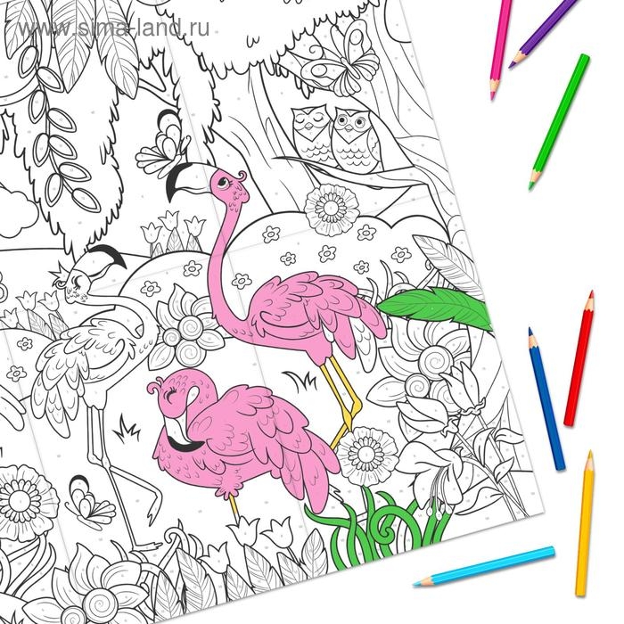 - Плакат большого размера предоставляет обширное поле для раскрашивания, где малыш может экспериментировать с карандашами или акварелью.
