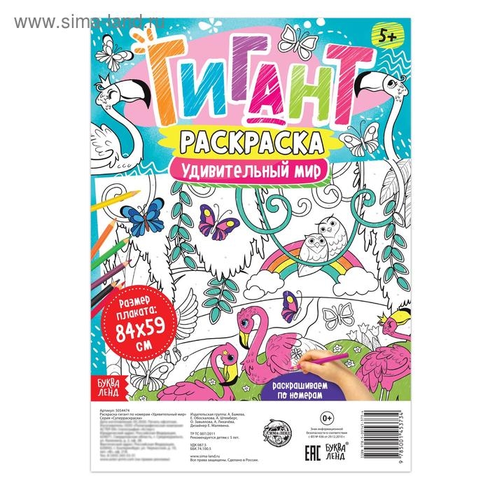 Раскраска-гигант по номерам «Удивительный мир», 59 × 84 см