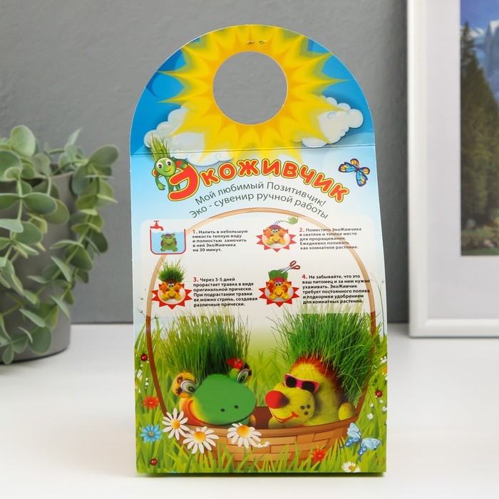 У забавного персонажа на теле или голове вырастает высокая нежная травка, если его регулярно поливать. Эти сувениры производятся только из 100 % экологичных и безопасных для здоровья составляющих.