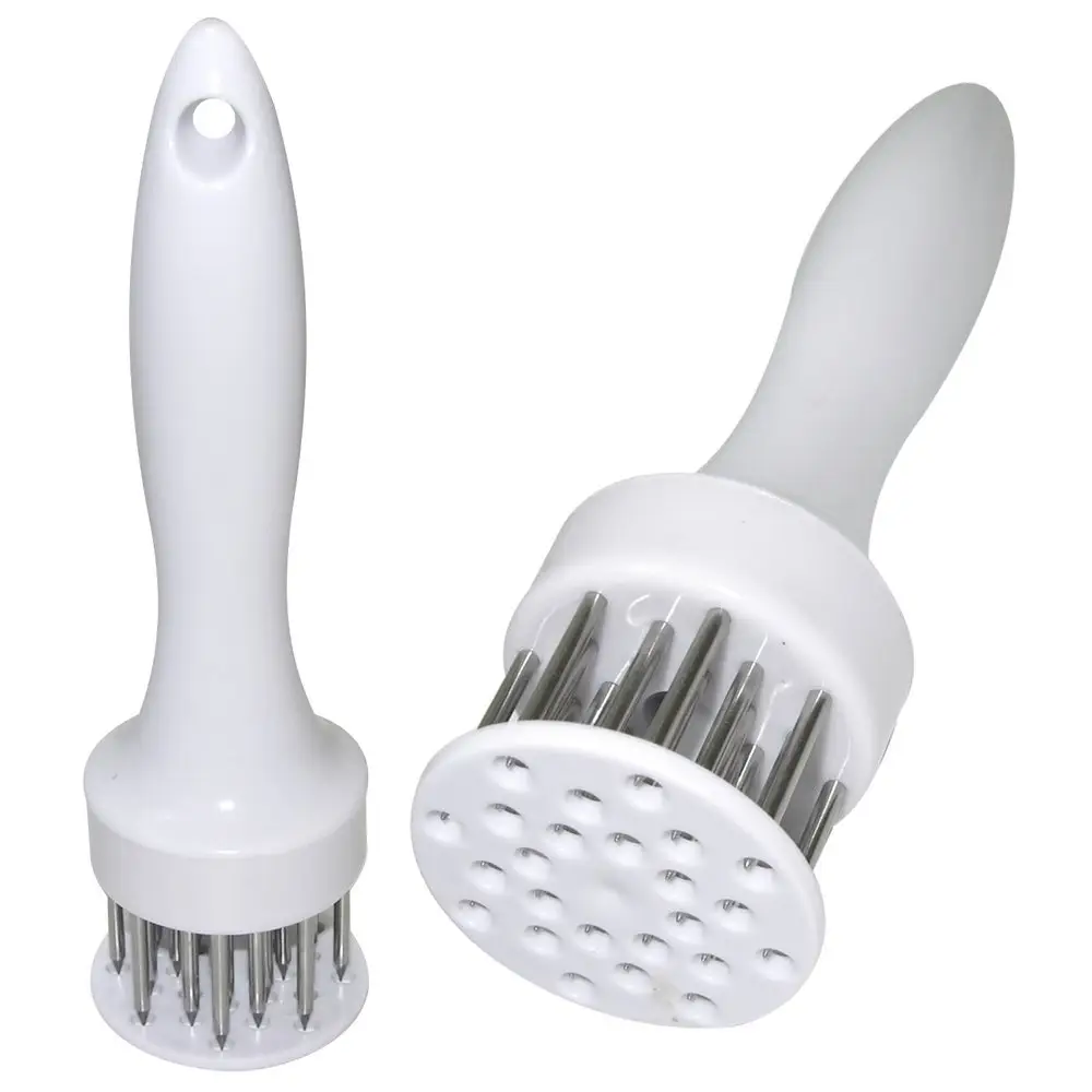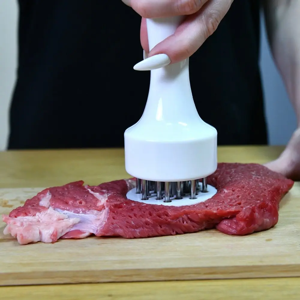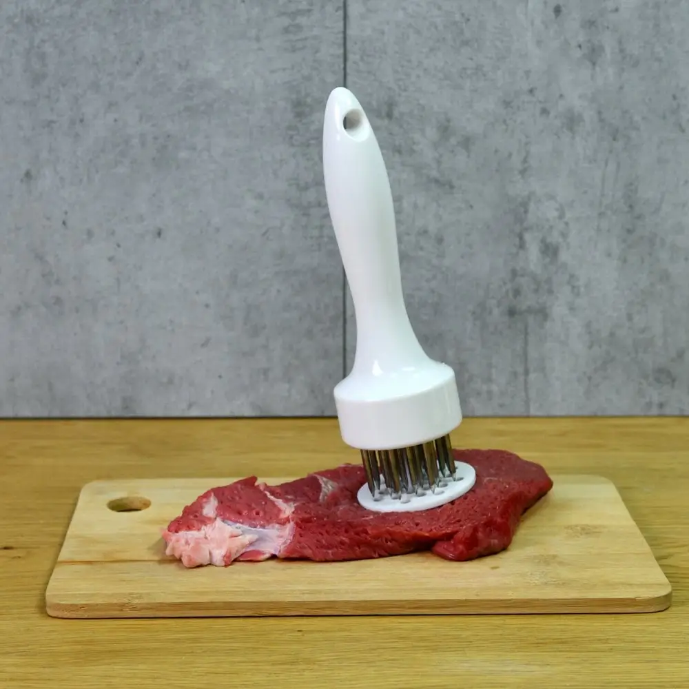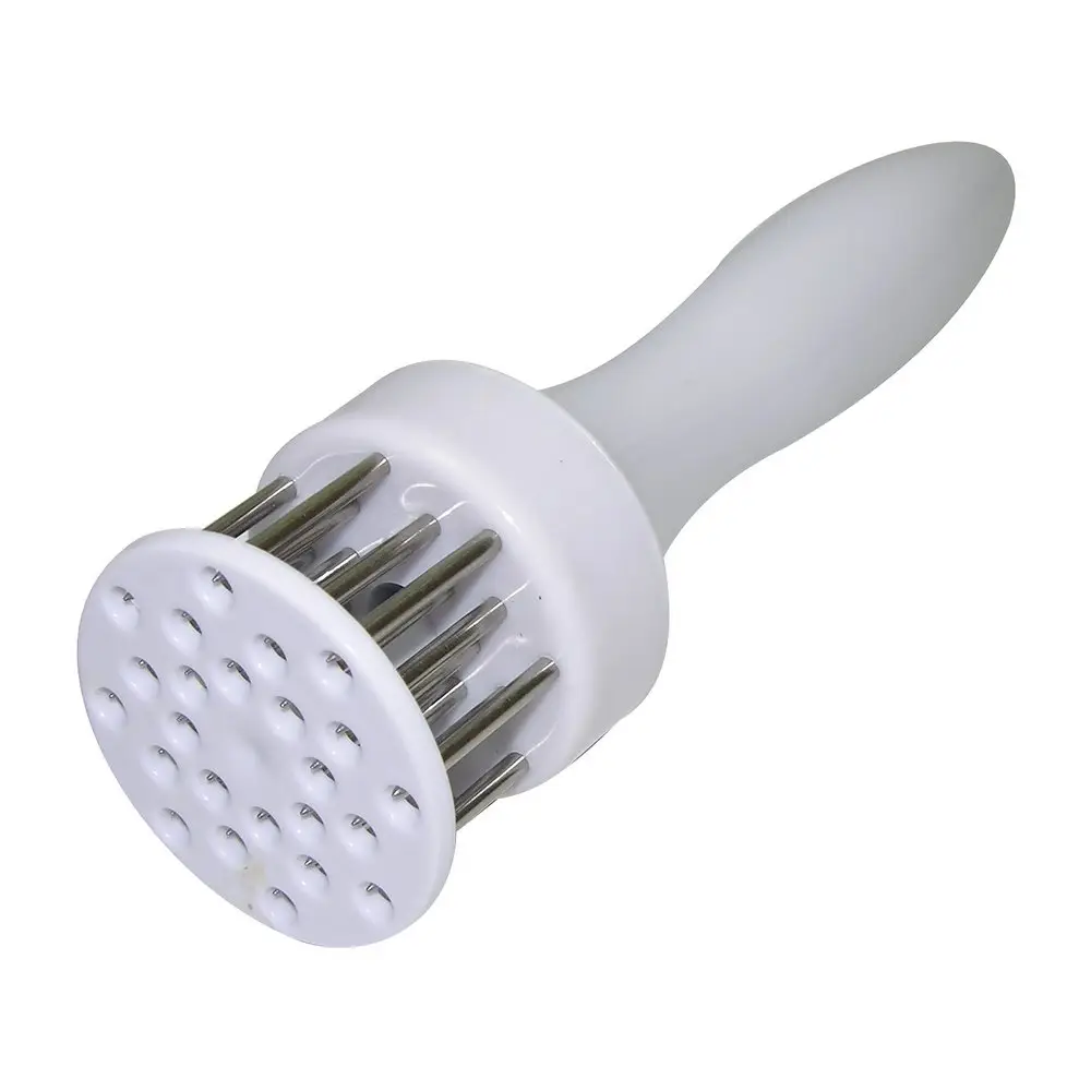 Чтобы мясо было мягче и сочнее, используйте специальный размягчитель. Принцип работы конструкции заключается в том, чтобы размягчить кусок мяса с помощью металлических стержней. Тендерайзер состоит из удобной ручки, металлических стержней и платформы, которая двигается в зависимости от толщины обрабатываемого куска.Приспособление позволяет сократить время готовки и придать мясным блюдам новые вкусовые качества.После использования тщательно вымойте с применением жидких моющих средств. Изготовлено: корпус из ударопрочного пластика (АБС), рабочая часть из коррозионностойкой (нержавеющей) стали.