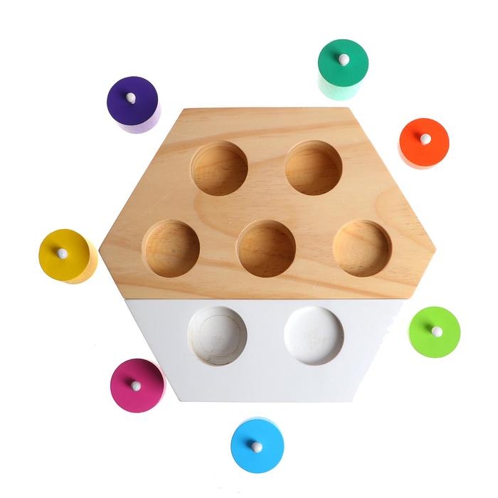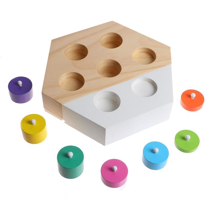 Набор создан по методике детского психолога и педагога Марии Монтессори. Этот принцип развития подразумевает самостоятельные занятия и игры без помощи родителей. В результате малыш научится различать цвета, формы и будет сортировать предметы по разным признакам. Также цилиндры можно использовать в качестве счётного материала.