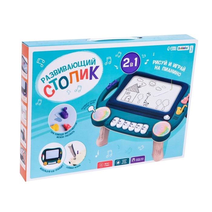 С такой игрушкой малыш научится создавать картинки, потренирует художественные навыки, координацию движений, мышление и воображение. Взаимодействуя с пианино, кроха сможет самостоятельно наиграть простые мелодии на клавишах. В процессе ребёнок тренирует музыкальное восприятие и мелкую моторику пальчиков.