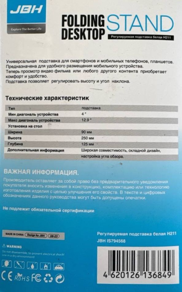 Регулируемая подставка H211 JBH белая (100шт/кор)