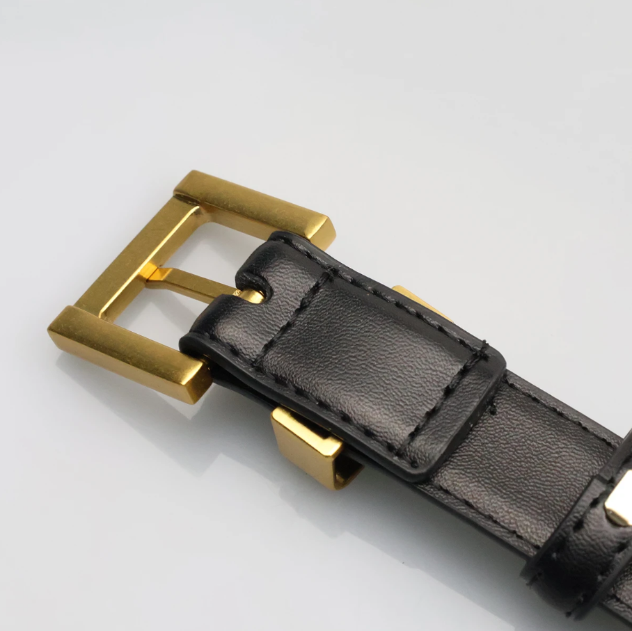 Классический черный цвет в сочетании с золотой пряжкой делает его универсальным аксессуаром. Стильный кожаный ремень будет гармонично сочетаться с различными элементами гардероба — от джинсов до брюк и платьев или шорт. Это не просто ремень, а выражение вашего стиля, которое добавит оригинальности и шарма любому образу.