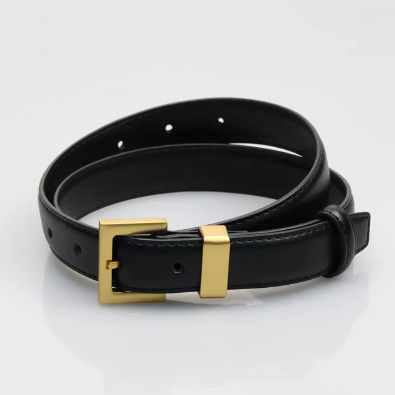 Этот стильный узкий женский ремень — отличный выбор для тех, кто ценит элегантность и высокое качество. Изготовленный из натуральной кожи и оснащенный золотой пряжкой, он прекрасно дополнит любой наряд, будь то джинсы, юбка или платье. С длиной от 85 до 120 сантиметров, он подходит для различных фигур, а широкий диапазон отверстий обеспечивает комфортную и идеальную посадку на талии.