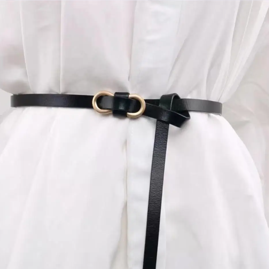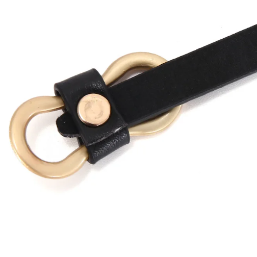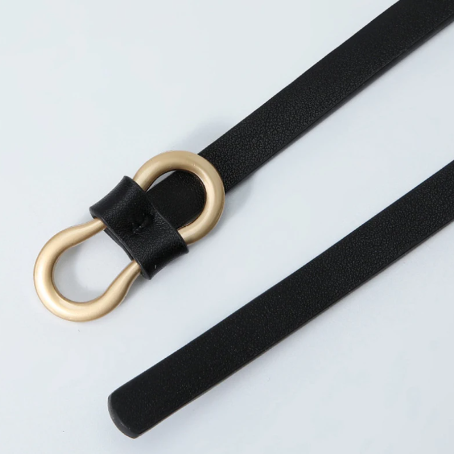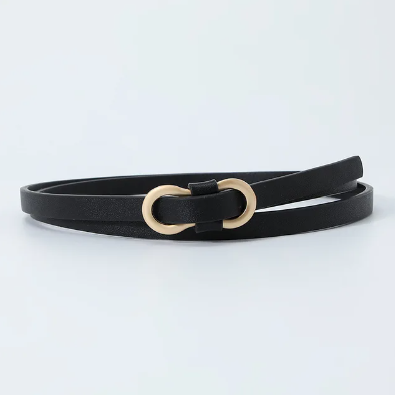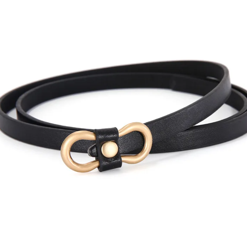 Ремень легко вписывается в любые наряды, будь то повседневные или вечерние. Черный цвет делает его универсальным выбором для создания разнообразных стилей — от классики до кежуал. Узкая форма позволяет носить его как с джинсами, так и с легкими летними нарядами, обеспечивая одновременно комфорт