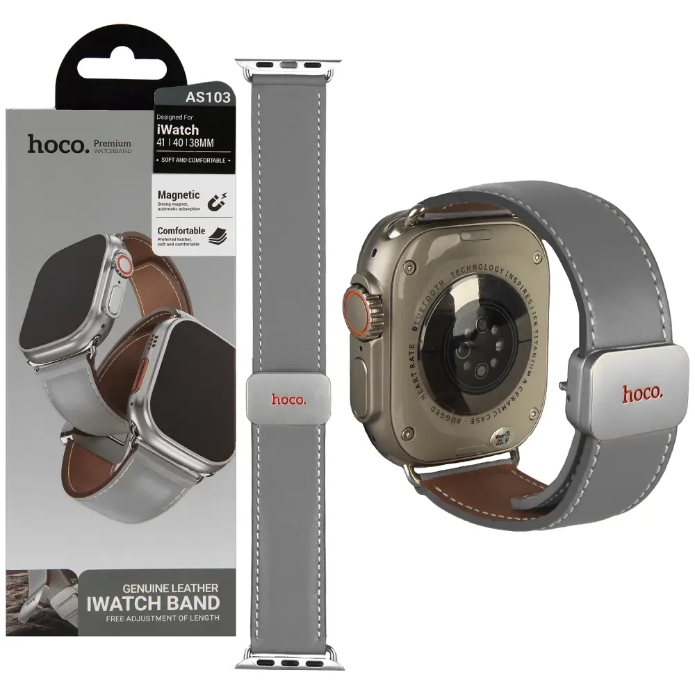Ремешок для Apl watch 38/40/41mm Watchband AS103 Knight magnetic buckle leather strap Gray HOCO