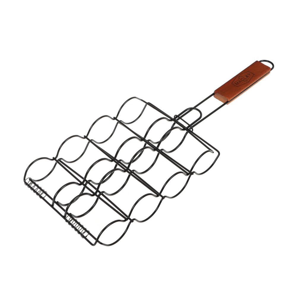 Решётка-гриль создана специально для готовки сосисок, колбасок и сарделек на мангале. Изделие имеет антипригарное покрытие. На решётке можно жарить 4 сосиски одновременно.