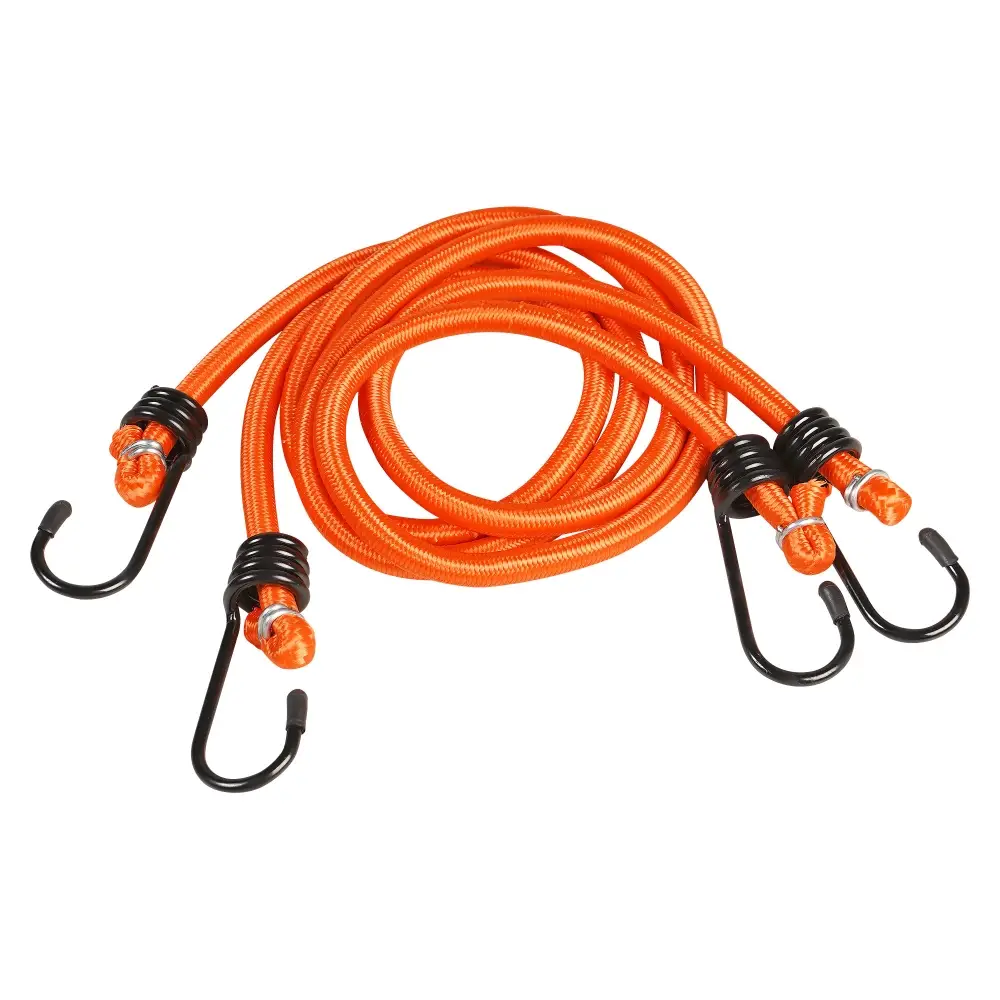 Фиксация этих резинок осуществляется с помощью металлических крючков, которые обладают пластиковыми наконечниками для более надежной фиксации и защиты от повреждений. Это позволяет надежно закрепить груз, предотвращая его смещение или падение во время движения.