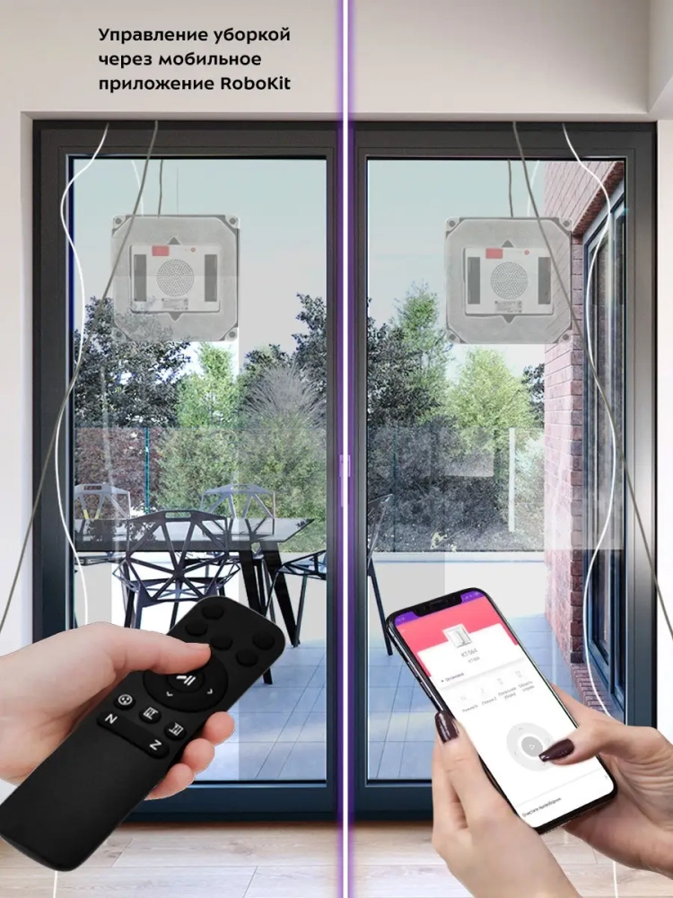 Прибор укомплектован страховочным тросом и удлинителем сетевого шнура, поэтому вы можете использовать робот для высоких или широких окон.