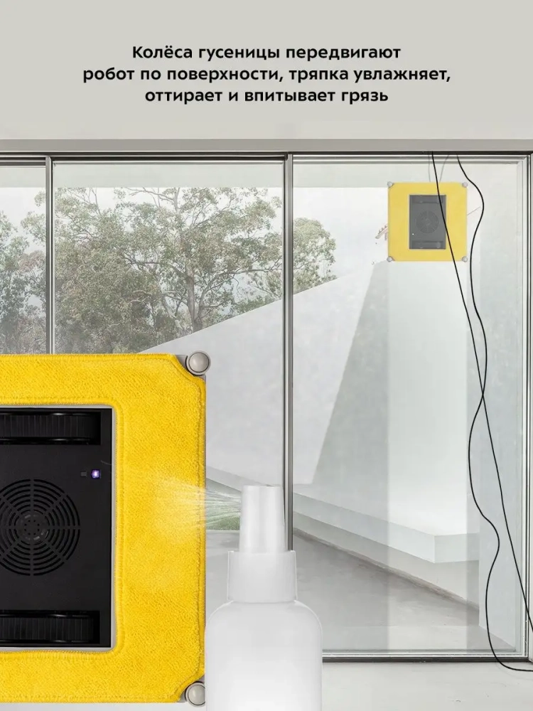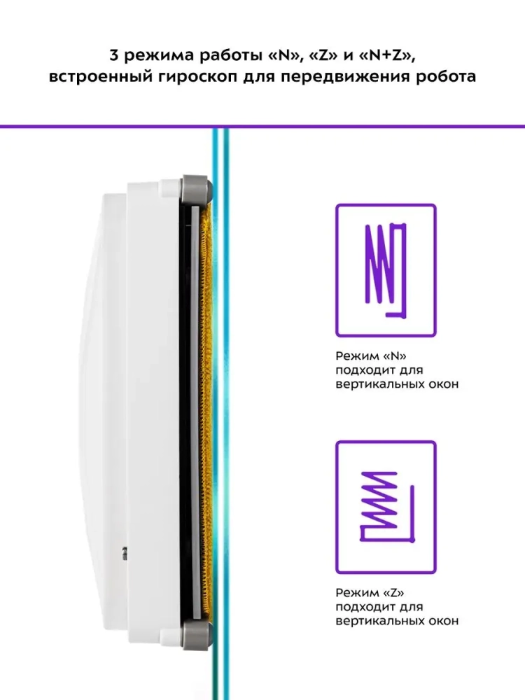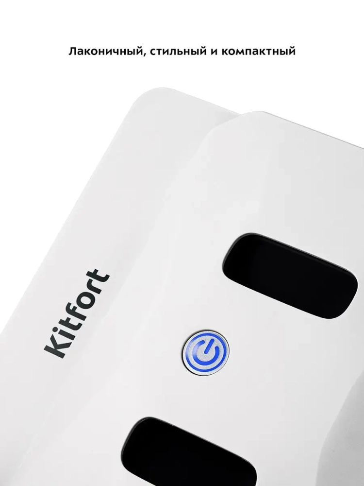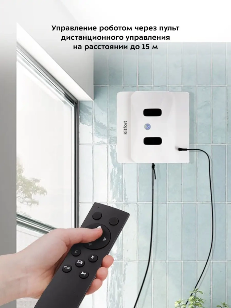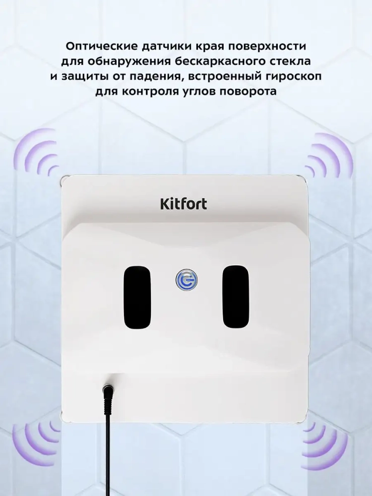 Робот Kitfort КТ-5104 предназначен для мытья стекол, кафельных и зеркальных покрытий. Робот оснащен вентилятором, который создает разрежение, и робот удерживается на гладкой вертикальной поверхности. Ко дну робота крепится чистящая тряпка, которая идет в комплекте. Тряпка увлажняет, оттирает и впитывает грязь. Колеса гусеницы, расположенные на дне робота, плавно передвигают его по поверхности. Внешний вид и принцип работы. Робот имеет лаконичный и практичный дизайн. Корпус изготовлен из прочного и качественного пластика. Передняя панель глянцевая. Форма робота приближена к квадрату. На передней панели расположена удобная ручка. С ее помощью вы можете легко переносить робот и крепить его к убираемой поверхности. На панели находится кнопка «Старт/Стоп» со световым индикатором. Безопасность и надежность. КТ-5104 оснащен оптическими датчиками края поверхности, которые позволяют роботу обнаружить края бескаркасного стекла и защитить устройство от падения. Прибор укомплектован страховочным тросом и удлинителем сетевого шнура, поэтому вы можете использовать робот для высоких или широких окон. На случай внезапного отключения электричества робот снабжен резервной системой питания, которая будет удерживать робот на окне около 20 минут. Гироскопическая навигация и режимы работы. Внутри робота установлен гироскоп, который позволяет контролировать углы поворотов робота. Таким образом, робот не допускает отклонения от эталонного маршрута. Робот имеет 3 режима уборки «N», «Z» и последовательно «N» + «Z» - для более тщательной очистки поверхности. Пульт ДУ и мобильное приложение. Управляйте роботом на расстоянии до 15 метров с пульта дистанционного управления. Вы можете дистанционно запустить уборку, поменять режим уборки и остановить уборку. Кнопками навигации можно направить робот в особо загрязненное место на поверхности. Область применения. Робот предназначен для использования в жилых помещениях и небольших офисах.