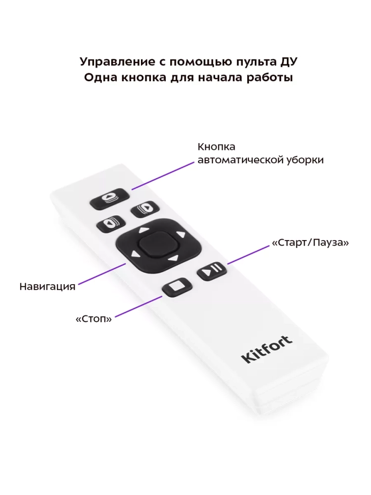 Управление роботом осуществляется при помощи пульта дистанционного управления. Вы можете дистанционно запустить уборку, поменять режим уборки и остановить уборку. Кнопками навигации можно направить робота в особо загрязненное место на поверхности.