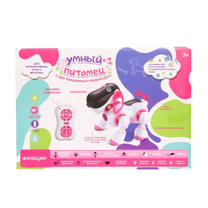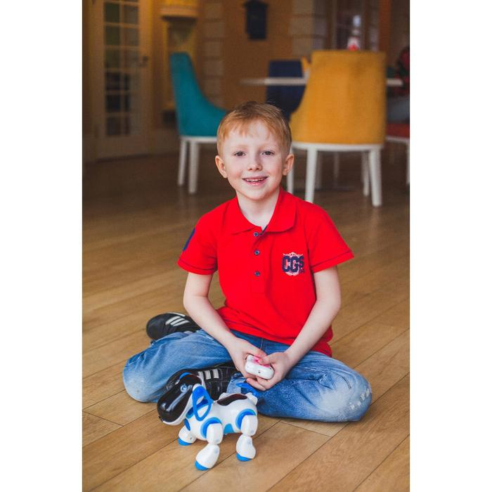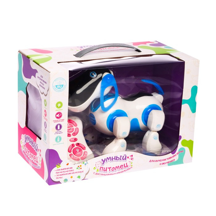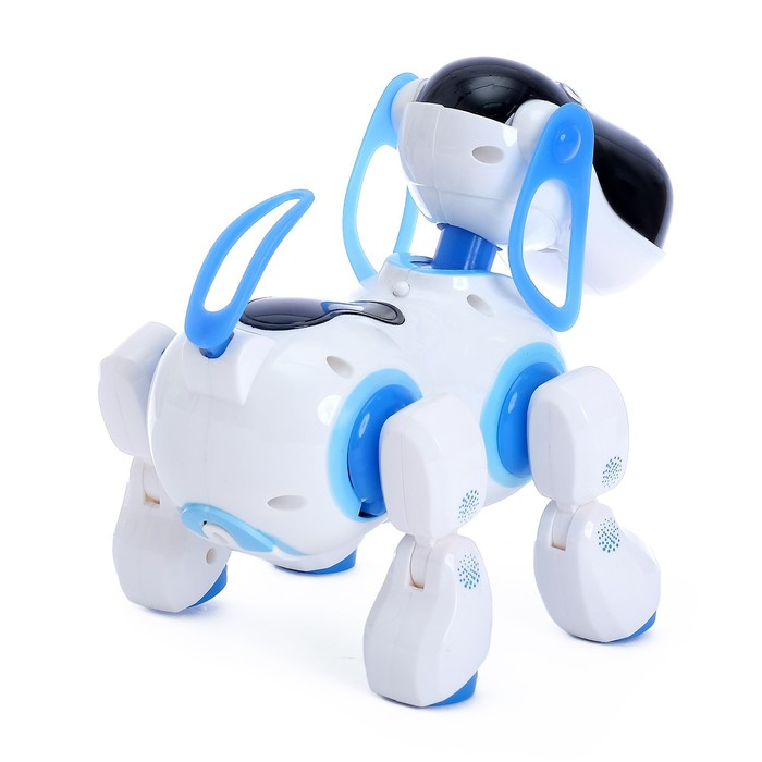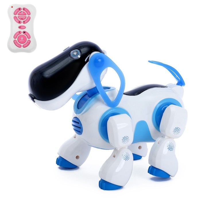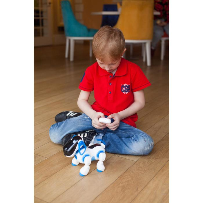 Робот собака «Ки-Ки», программируемый, на пульте управления, интерактивный: звук, свет, танцующий, музыкальный, на батарейках, на русском языке, синий