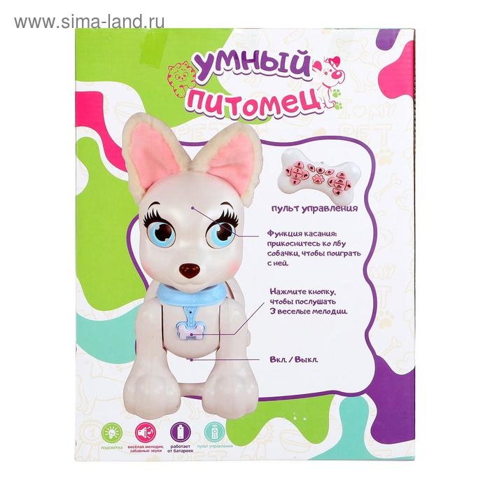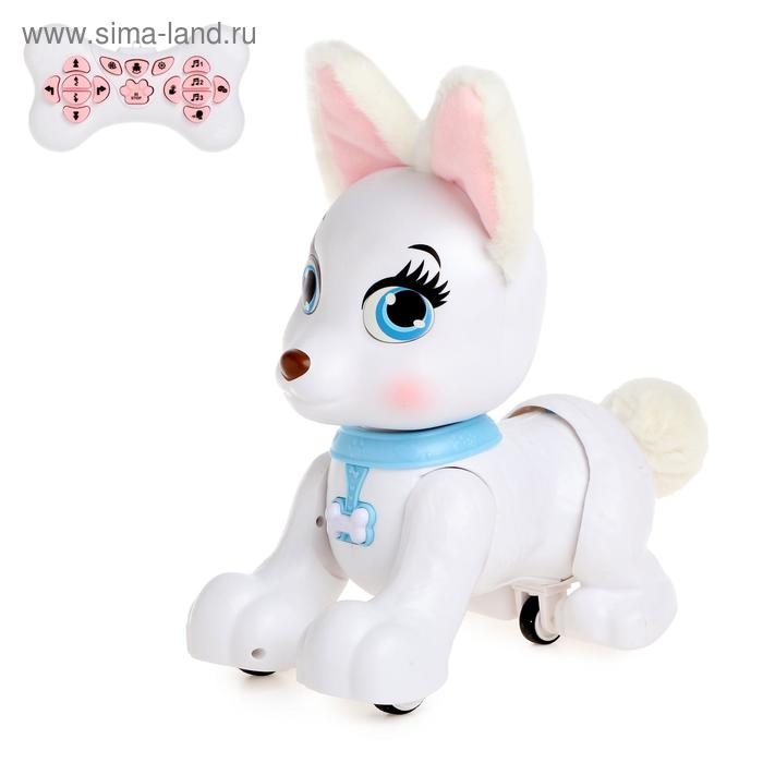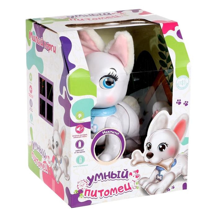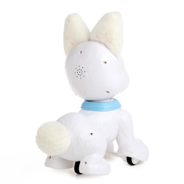 Белый щенок станет настоящим другом для вашего ребёнка! Он поёт песенки, выполняет трюки и реагирует на прикосновения. А ещё он очень милый.