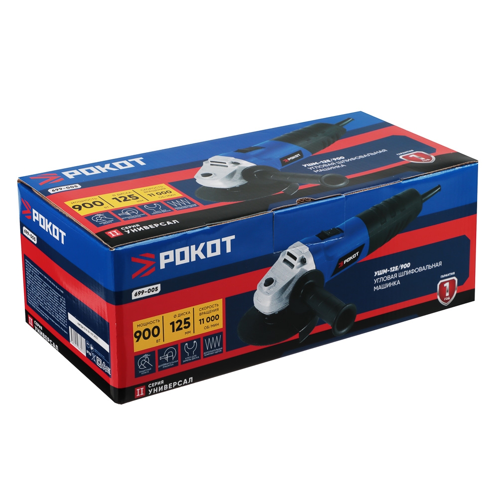 РОКОТ Машина шлифовальная угл. УШМ-125/900, 900 Вт, 125 мм, 11000 об/мин, рег. з.кожуха б/кл.