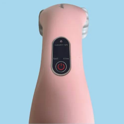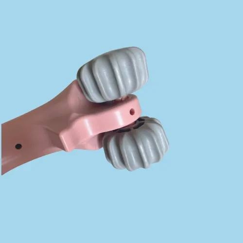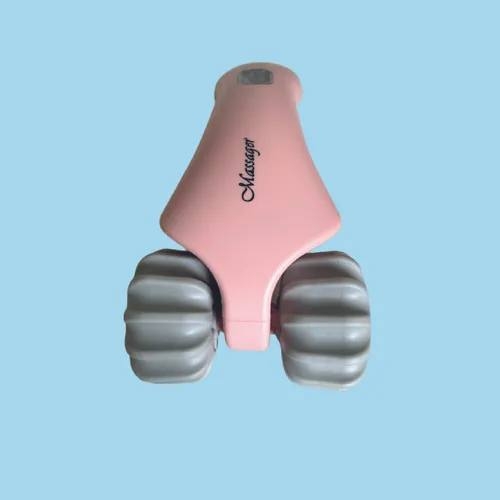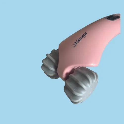 Массажер имеет 2 подвижных ролика (вращаются при прокатке массажера по телу, движение осуществляется не за счет батареек), 2 режима вибрации, выступающий элемент для точечного массажа.