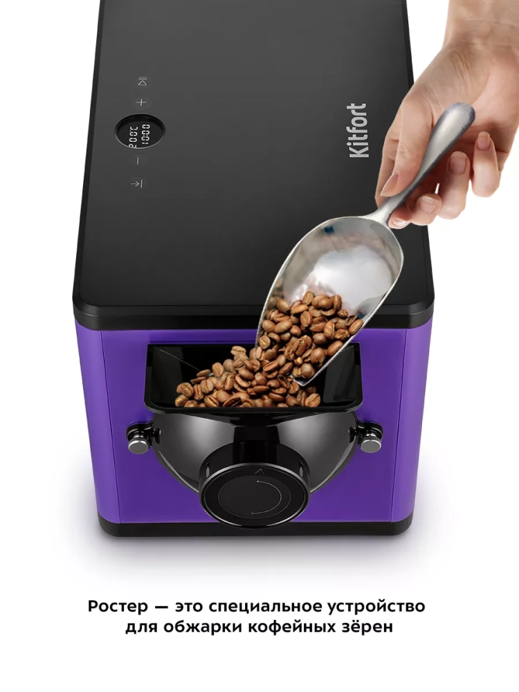 Принцип работы ростера Kitfort КТ-7162 очень прост: зерна засыпаются в ростер через загрузочную горловину, нагревательные элементы, расположенные вверху и внизу устройства и вращение барабана обеспечивают равномерную обжарку зерен. По окончании приготовления зерна автоматически высыпаются через отверстие для выхода зерен в загрузочной горловине.