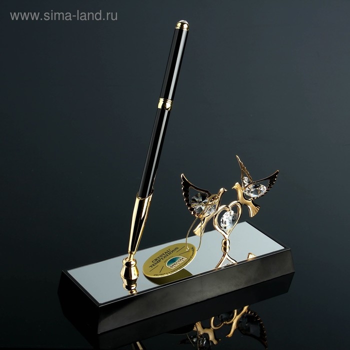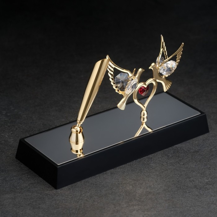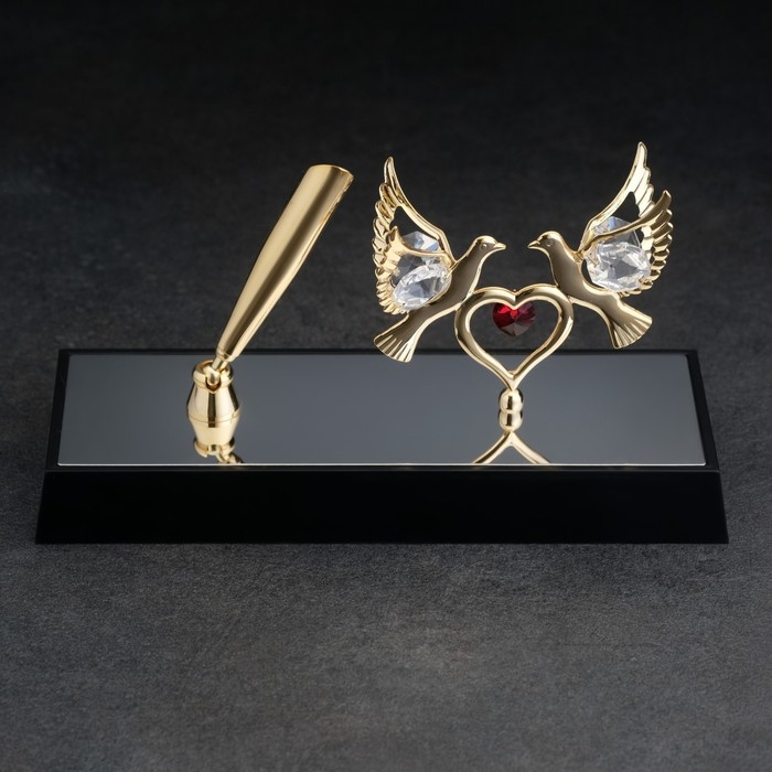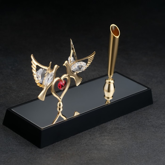 Ручка на подставке «Голуби», 16×6×19 см, с кристаллами