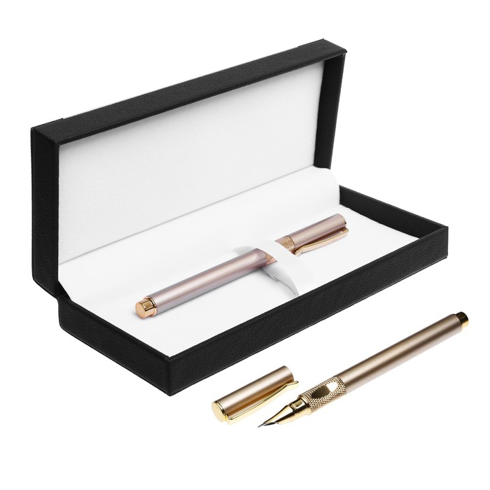 Ручка подарочная, перьевая, в кожзам футляре, корпус золотистый