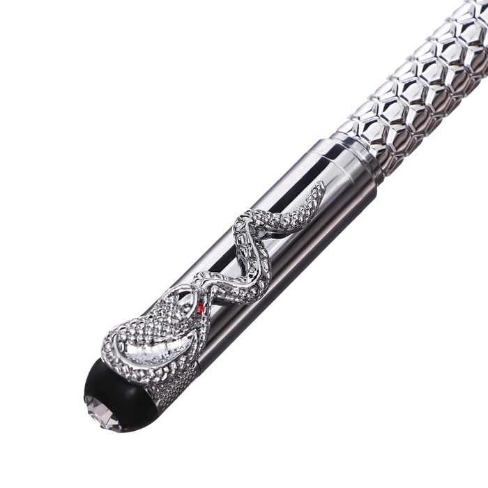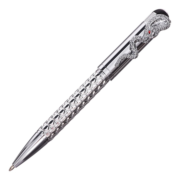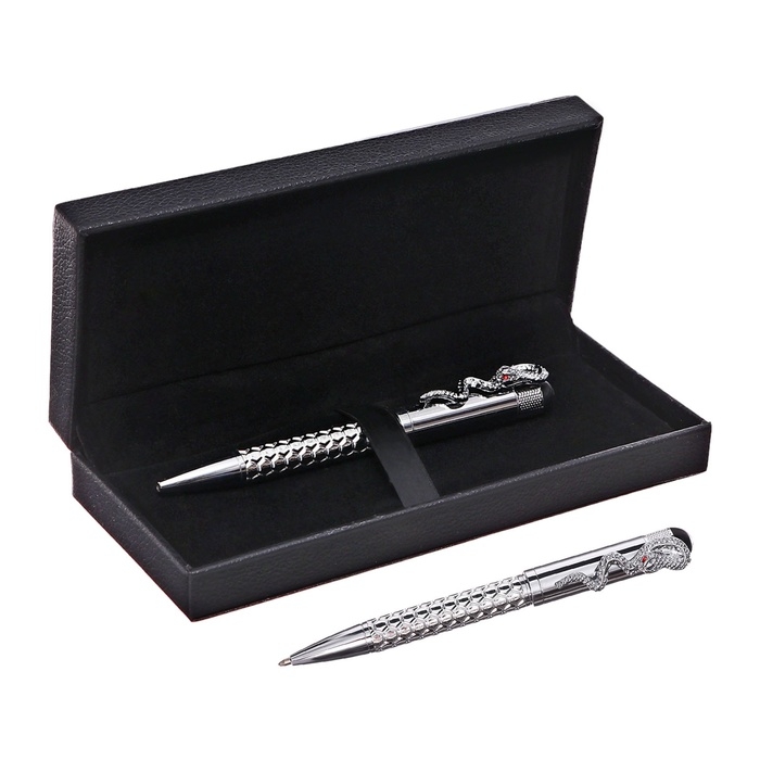 Ручка подарочная шариковая в кожзам футляре поворотная Змея корпус серебро