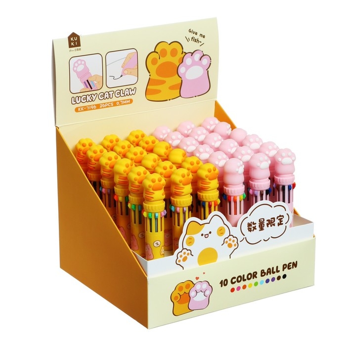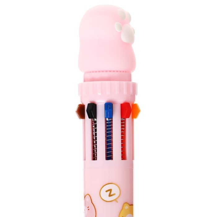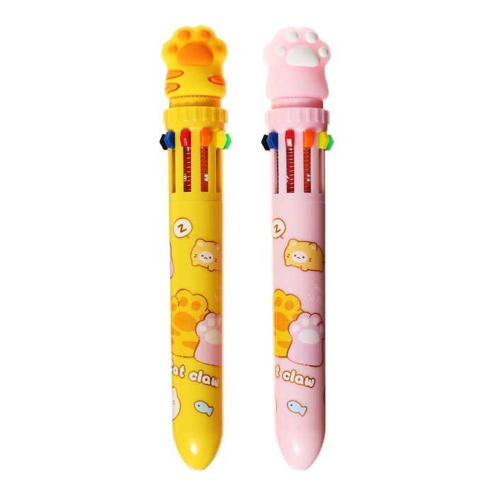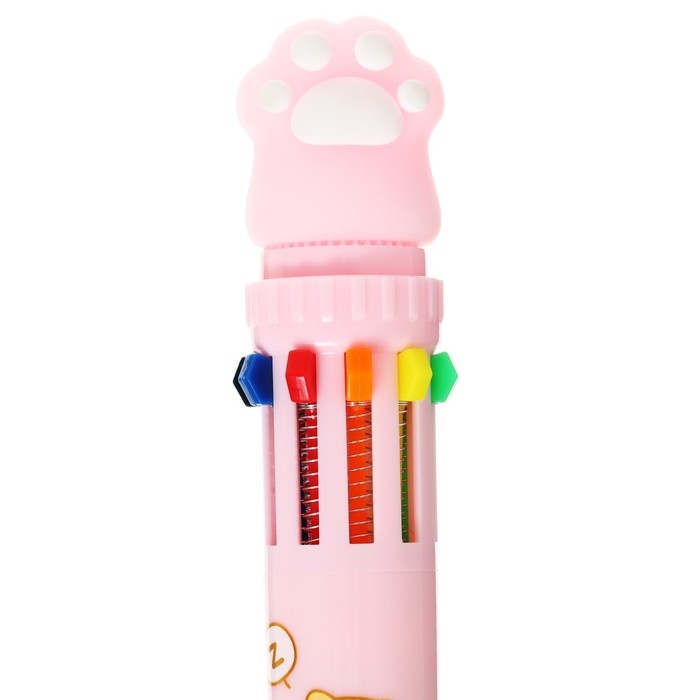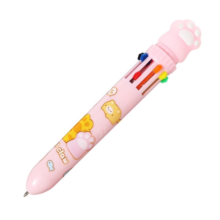 Ручка шариковая автоматическая 10-ти цветная, стержень 0,7 мм, "Лапка", МИКС