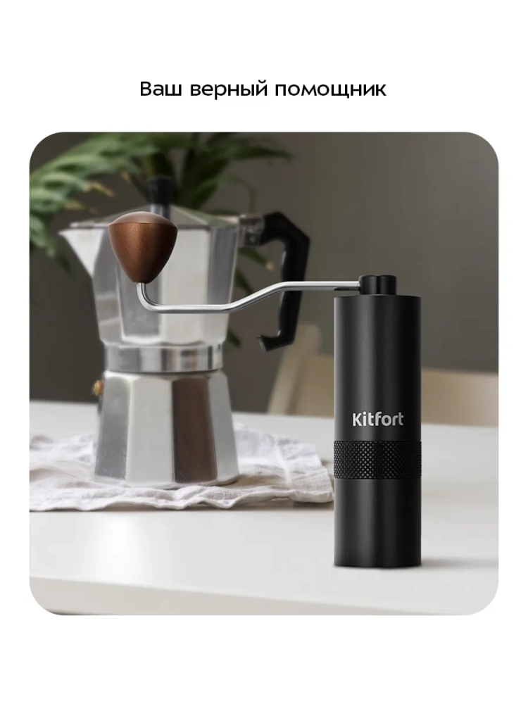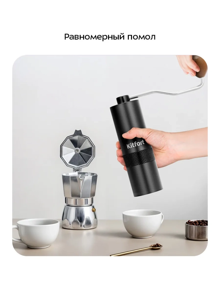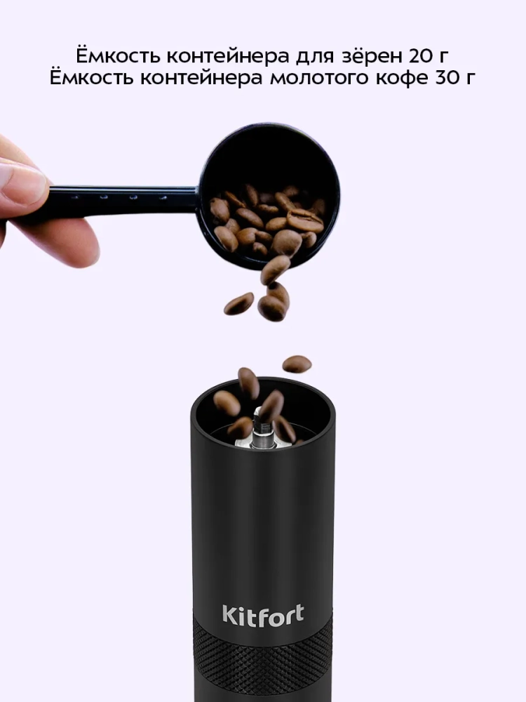 Ручная кофемолка Kitfort КТ-7605 является жерновой кофемолкой и предназначена для помола кофейных зерен. Она оснащена коническими жерновами из нержавеющей стали.