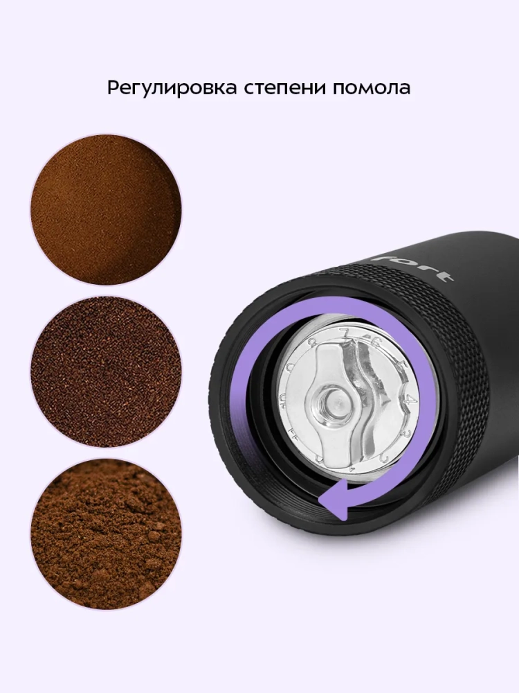 Жерновая кофемолка дает равномерный помол и позволяет настроить его степень: от мелкого — для турки, до крупного — для френч-пресса.