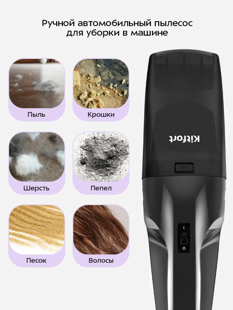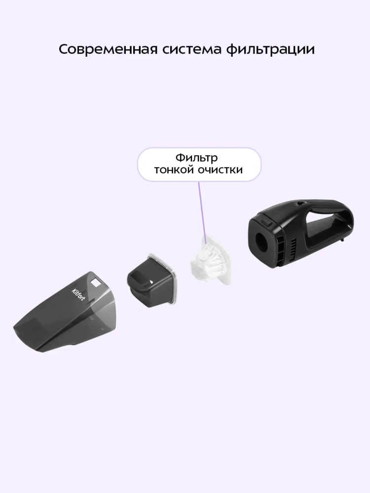 Ручной автомобильный пылесос Kitfort КТ-5317 — это компактное устройство, которое легко справится с пылью и мусором, а также с небольшим количеством жидкости при уборке вашего автомобиля. Благодаря работе от прикуривателя вы можете очистить салон автомобиля в любом месте. Небольшие габариты и малый вес пылесоса делают процесс уборки простым и удобным, а хранить его можно в багажнике.
