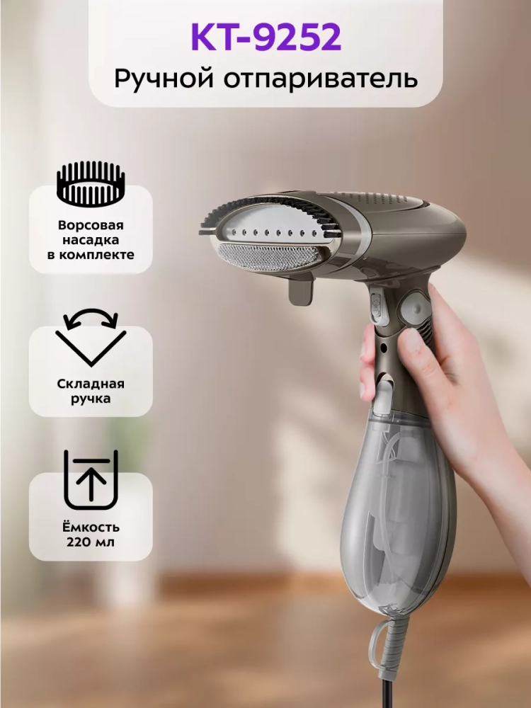 Ручной отпариватель Kitfort КТ-9252 предназначен для разглаживания изделий из текстиля с помощью потока горячего пара. Ручной отпариватель приведет в порядок вещи быстро и практически в любом месте без раскладывания гладильной доски. Одежда при этом может висеть на вешалке, сушилке для белья или веревке. Устройство обладает такими достоинствами, как мощный поток пара, минималистичный дизайн, удобство при использовании и хранении.