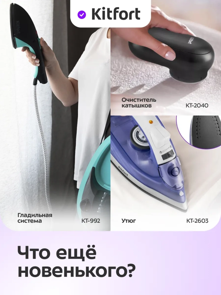 У отпаривателя КТ-9296 простое управление одной кнопкой на ручке прибора. Шнур отпаривателя оснащен защитой от перегиба, что увеличивает срок службы прибора. В комплекте предусмотрена ворсовая насадка, которая поможет очистить вещи от пыли, ворса, волос и шерсти домашних животных. Для удобства заполнения резервуара для воды в комплекте есть мерный стакан.