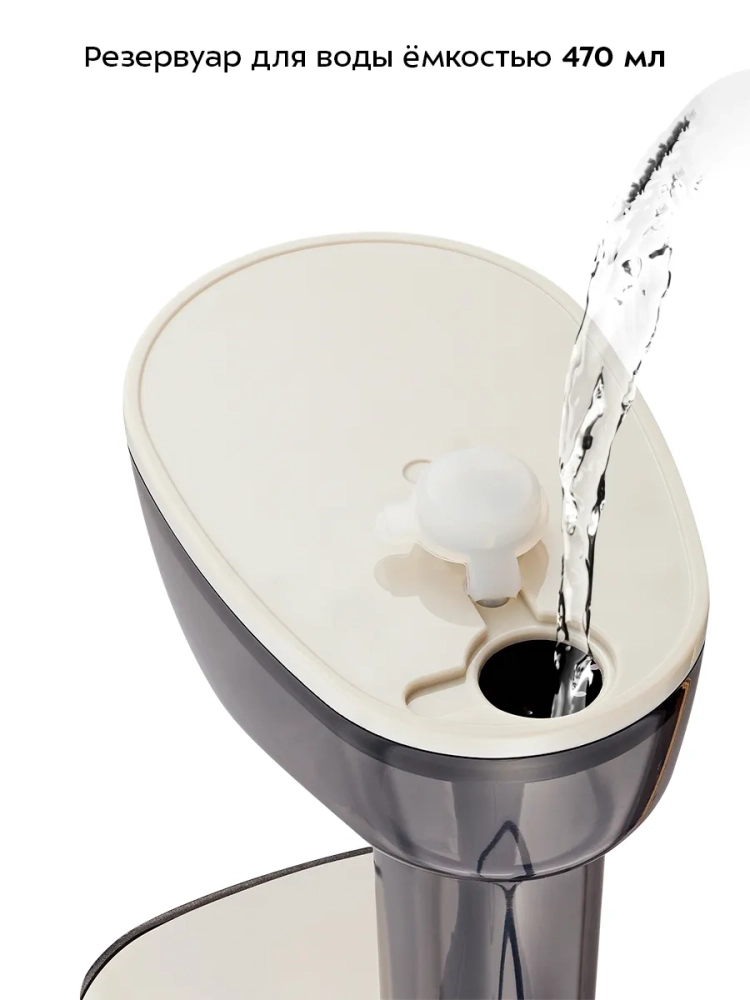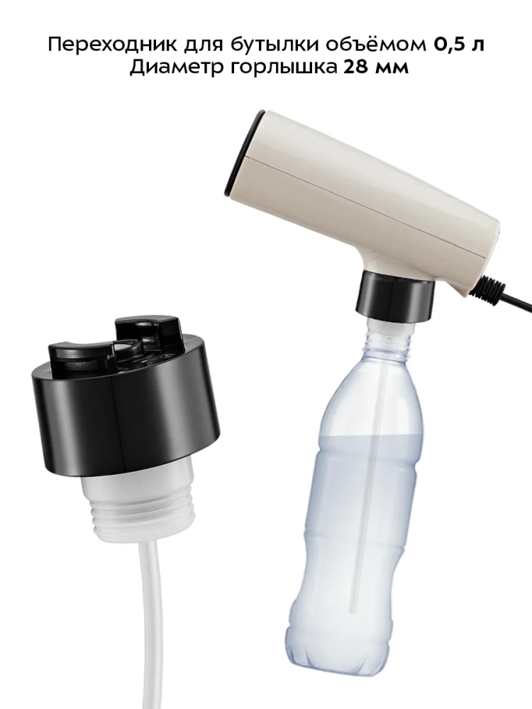Шнур отпаривателя оснащен защитой от перегиба, что увеличивает срок службы прибора. В комплекте идет специальный переходник для бутылки, который позволяет использовать отпариватель с бутылками вместо резервуара для воды. Переходник подходит для бутылок с диаметром горлышка 28 мм. Для использования подойдут бутылки для воды объемом 0,5 л, которые вы можете купить в любом магазине. Например, это удобно в поездках: не нужно везти с собой резервуар. Вы можете использовать бутылку большего объема, чем резервуар, когда вам необходимо отпарить много вещей.
